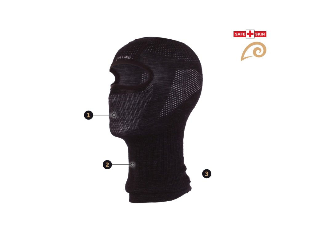 Univerzálna vlnená kukla, jednovrstvový úplet. MATERIÁL: 70% MERINO VLNA, 30% POLYAMIDE 120g 1. ochrana pred chladom ochranu pred chladom okolo krku zabezpečí plný jednolícny úplet z vlnenej priadze 2. priechod vydychovaného vzduchu ľahký priechod vydychovaného vzduchu zabezpečí vzdušná časť. 3. menej šitých švov kukla je vyrobená technológiou seamless - minimálny počet švov. Šité iba švy okolo temena hlavy. Elastický materiál zabazpečuje priliehavosť na hlave a ľahké nasadenie ďalšej ochrany hlavy, napríklad bezpečnostné prilby.